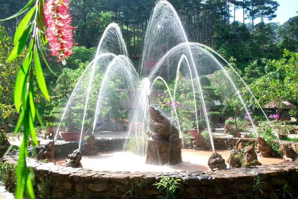 Một góc khuôn viên bên trong khu du lịch thác Prenn là rừng thông reo, bụi cây xanh mát, thích hợp cho các hoạt động dã ngoại.