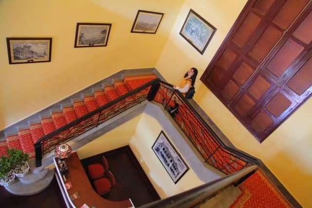 Cuối những hàng cây là tòa Dinh thự vàng rực giữa không gian bát ngát sắc xanh lá, có kiến trúc độc đáo và xinh đẹp, mang dáng vẻ tao nhã, uy nghi, cổ kính. Đây là nơi tái hiện cuộc đời vô cùng sóng gió nhưng cũng rất huy hoàng của vua Bảo Đại.