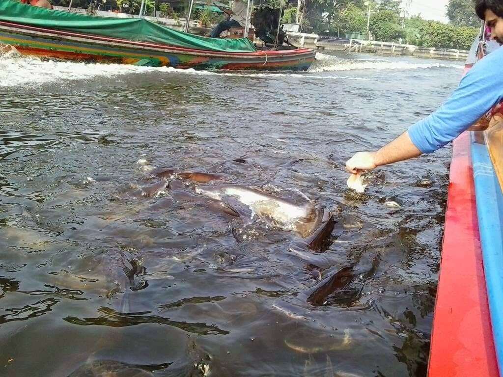 Sông Chao Phraya cũng rất nhiều cá, loại cá da trơn giống cá basa, cá tra ở Việt Nam. Đây là loài cá tự nhiên trên sông, thuộc Hoàng Gia Thái nên không ai đánh bắt, thức ăn của chúng là bánh mì của du khách đến tham quan. Tới đây, du khách có những giây phút thư giãn vui nhộn với cho cá ăn bánh mì.