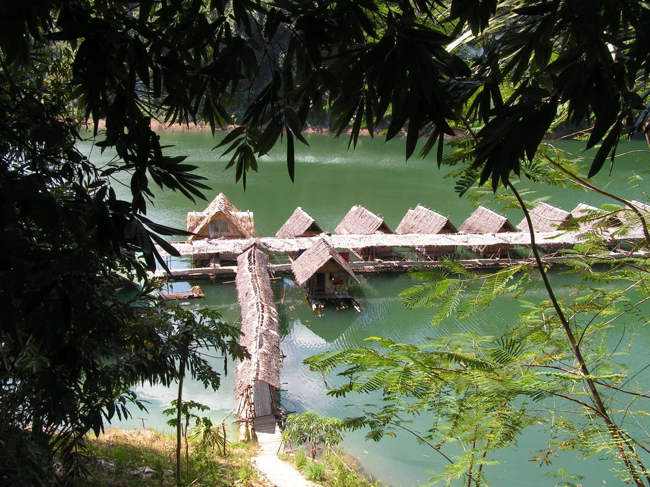Bạn cũng có thể chọn ngủ trong những bungalow nhỏ nhắn nằm trên mặt nước của hồ Cheow Lan, tự do chèo thuyền kayark, tắm nắng hay bơi trong làn nước xanh ngọc bích của hồ.