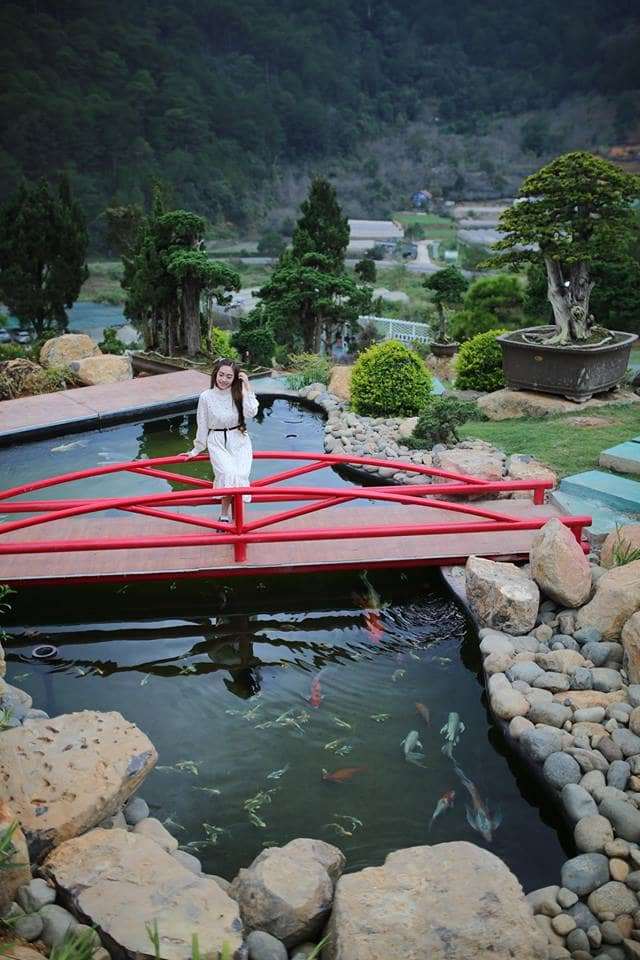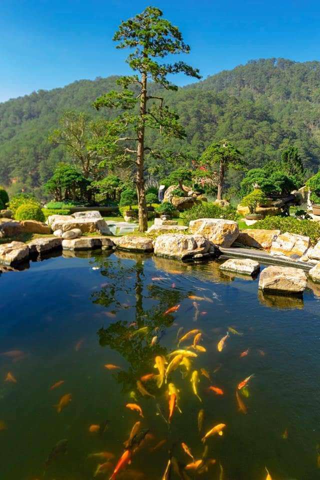 Bên cạnh đó QUE Garden còn thiết kế những hồ cá Koi đạt tiêu chuẩn Nhật Bản với hàng ngàn con cá Koi được lựa chọn kỹ lưỡng từ nhiều giống cá Koi khác nhau. Mang đến một không gian thư thái hoà quyện với thiên nhiên Đà Lạt.